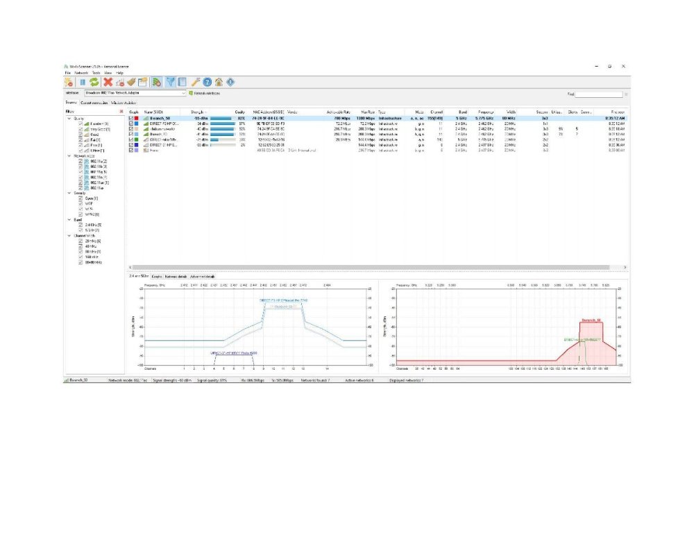 2. I have found a free wi-fi scanner which gives some great information in regard to your wi-fi network. It is called: Wi-Fi Scanner version 21.05 from LizardSystems. I have attached a pic of the results for review. It shows me what is on the 5.0 and the 2.4 wi-fi networks.