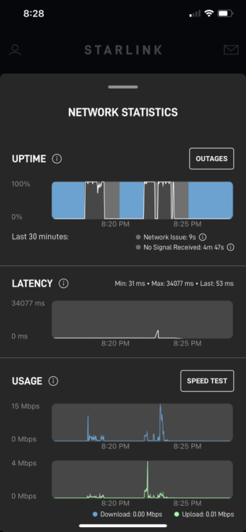 I have had starlink up and running well over two months and it has been wonderful to us. It hardly ever dropped service and was fast. This is now day 2 that we have been completely (almost) offline. With the exception of quick(5 minute) bursts of connection. I have the Ethernet adapter and it is plugged into a netgear ac1750. The thing that stumps me is nothing has changed. The cables are fine, I haven’t moved anything, nor did I change any settings. Does anyone know what I could try to resolve this? I have unplugged for a minute and plugged back in and waited over an hour, as well as factory resetting it by plugging in and unplugging 3x. I don’t know of anything else to do. Please help, and thank you in advance.